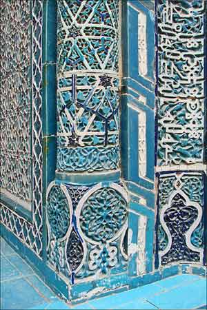 Touman Aka était la jeune épouse favorite de Tamerlan. Son mausolée est richement décoré de mosaïques aux décors géométriques.